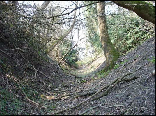 These two kilns are thought to be the last phase of the lime works, designed to be fired continuously over a three month period (information C Richards). They clearly represent the remains of a substantial local industry. Below and south of both kilns is a flat work area, which leads into the remains of a hollow way, which would have once linked with the lane to the south.