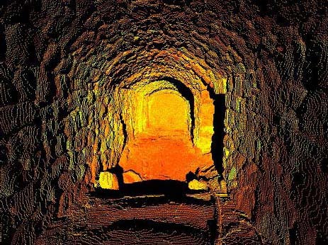 Jenkins writing in 1983 gives an account of a conversation with Jim Reynolds a member of the Reynolds family who had worked the mine from the mid 19th century. Mr Reynolds recalls as a boy taking food to the mines and that the tunnel extended for perhaps a mile into the hill and that on the hill above the mine was a ventilation shaft with a ladder, down which the miners would descend to the quarry face (Jenkins 83).